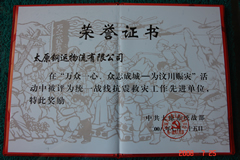 2008年7月25日,我公司被太原市委統(tǒng)戰(zhàn)部授予“統(tǒng)戰(zhàn)系統(tǒng)抗震救災(zāi)先進單位”榮譽稱號。