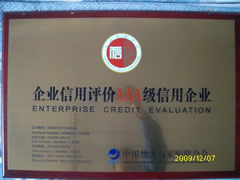 2009年12月3日,我公司被中國物流與采購聯(lián)合會(huì)評(píng)為企業(yè)信用評(píng)價(jià)AAA級(jí)信用企業(yè)。