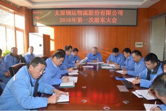 1月18日上午,太原鋼運物流股份有限公司2016年****次股東會議在公司二樓會議室召開。董事長趙陽主持會議,并向各位股東報告了2015年公司各項工作情況和經濟指標完成情況,同時對2016年的發(fā)展目標提出了新的要求,對全年總體工作計劃做了部署。