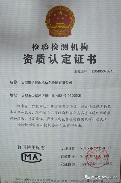 2018年11月22日,公司機(jī)動(dòng)車檢測站通過檢驗(yàn)檢測機(jī)構(gòu)資質(zhì)認(rèn)定擴(kuò)項(xiàng)評(píng)審,取得安檢1號(hào)線、2號(hào)線、綜檢1號(hào)線證書附表,標(biāo)志著我公司已****具備安檢、環(huán)檢、綜檢三檢合一的資質(zhì)許可。
