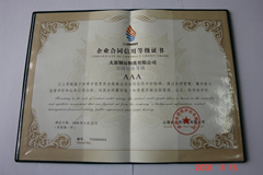 2008年8月12日,山西省信用評(píng)估有限公司對(duì)我公司的合同信用狀況進(jìn)行評(píng)價(jià),確定我公司2007年度合同信用綜合評(píng)價(jià)級(jí)別為AAA級(jí),并頒發(fā)《企業(yè)合同信用等級(jí)證書》。