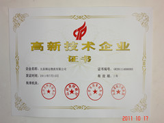 2011年7月12日,經(jīng)山西省科技廳、省財政廳、省國稅局、省地稅局組成的山西省高新技術(shù)企業(yè)認定管理機構(gòu)批準,我公司被認定為高新技術(shù)企業(yè)。