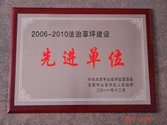2011年12月29日,我公司獲得由中共太原市尖草坪區(qū)委員會(huì)和太原市尖草坪區(qū)人民政府聯(lián)合頒發(fā)的《2006-2010法治草坪建設(shè)先進(jìn)單位》榮譽(yù)稱號(hào)。