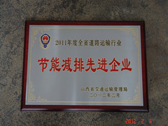 2012年2月8日,在山西省道路運輸工作會議上,我公司獲得由山西省交通運輸管理局頒發(fā)的2011年度全省道路運輸行業(yè)《節(jié)能減排先進(jìn)企業(yè)》榮譽稱號。